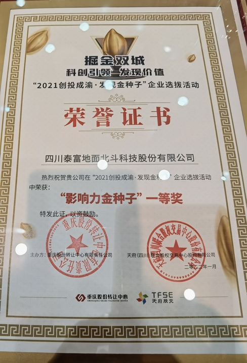 Congratulations to the company for winning the first prize of “Influential Golden Seed” in the 2021 Venture Capital Chengdu-Chongqing Discovery Golden Seed Award
