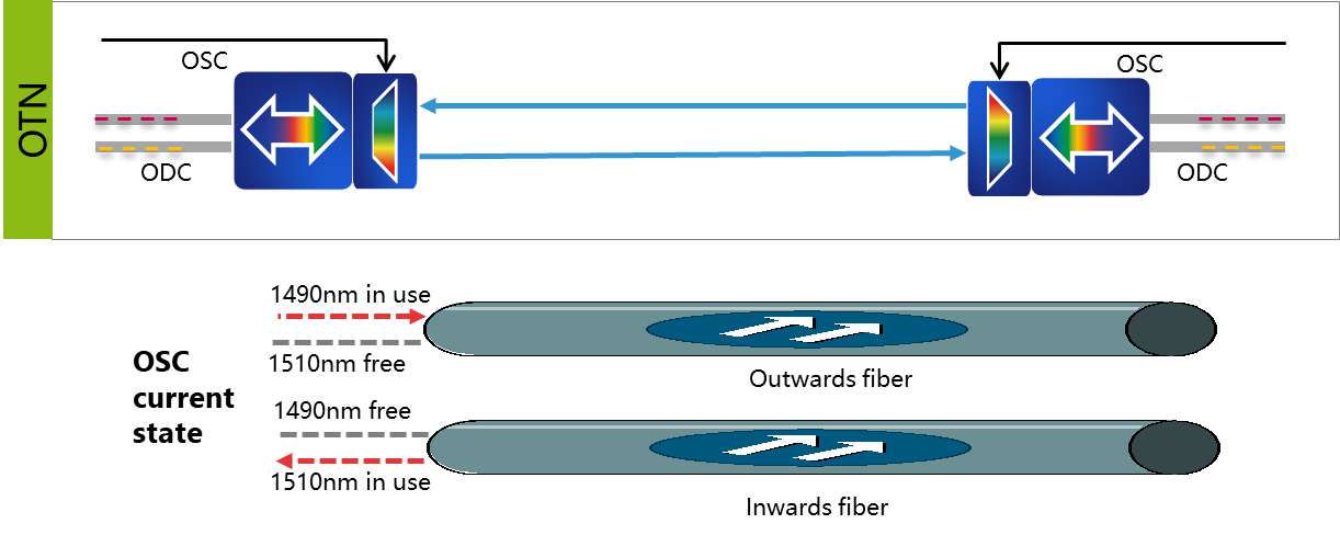Current Status: The optical data channel(ODC) uses dual-fiber bidirectional DWDM technology, one fiber sends, the other fiber receives; The optical supervision channel(OSC) uses CWDM technology, bypass the amplifier and multiplexed into the main fiber in the corresponding transmission direction.